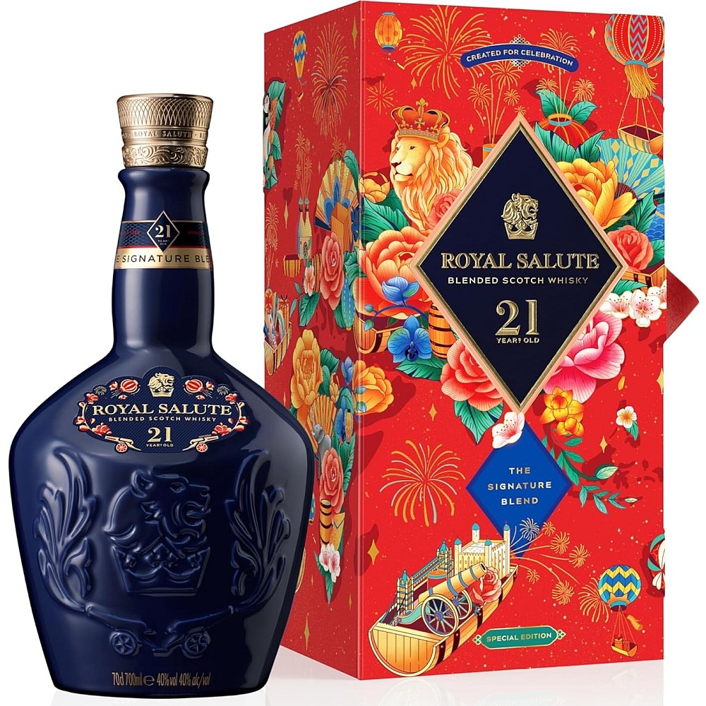 Deze speciale editie van de Royal Salute 21 Year Old is uitgebracht ter ere van het Chinese Nieuwjaar 2024. Het is een luxueuze blended Scotch whisky, samengesteld uit uitsluitend whisky’s die minimaal 21 jaar hebben gerijpt. De editie is vormgegeven in een feestelijke verpakking die symbool staat voor voorspoed, geluk en viering – geheel in lijn met de sfeer van het Lunar New Year.