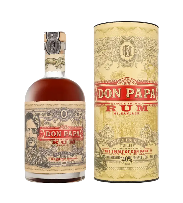 Deze rum geproduceerd door Bleeding Heart Rum Company, is een eerbetoon aan Papa Isio, een bijna vergeten held van de Filipijnse revolutie. Don Papa, voorheen opzichter op een suikerrietplantage, sloot zich aan bij het verzet om de Spaanse overheersers uit zijn geliefde vaderland te verdrijven.