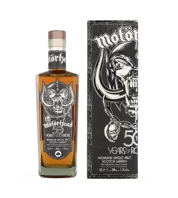 Ervaar pure kracht en karakter met de exclusieve Motörhead 50 Years Limited Edition Whisky — een indrukwekkende Highland single malt ter ere van een halve eeuw compromisloze rock-’n-roll van Motörhead.