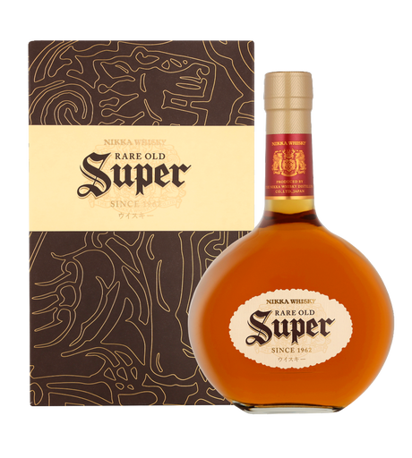 Nikka Super Rare Old is een klassieke Japanse blended whisky met een rijke historie. Deze expressie werd voor het eerst uitgebracht in 1962 en bevat een hoog aandeel malt whisky afkomstig van de beroemde Yoichi- en Miyagikyo-distilleerderijen van Nikka.